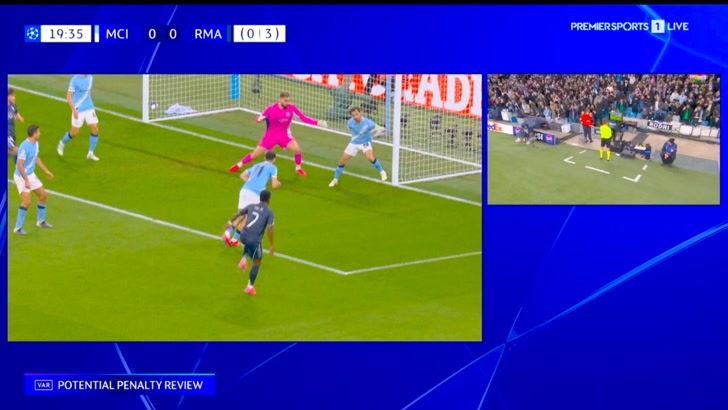 Manchester City 0 - [1] Real Madrid - Vinicius Junior Penalty 22' (+ Silva red card)